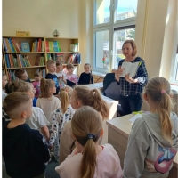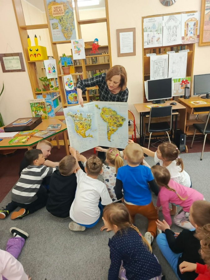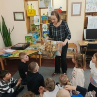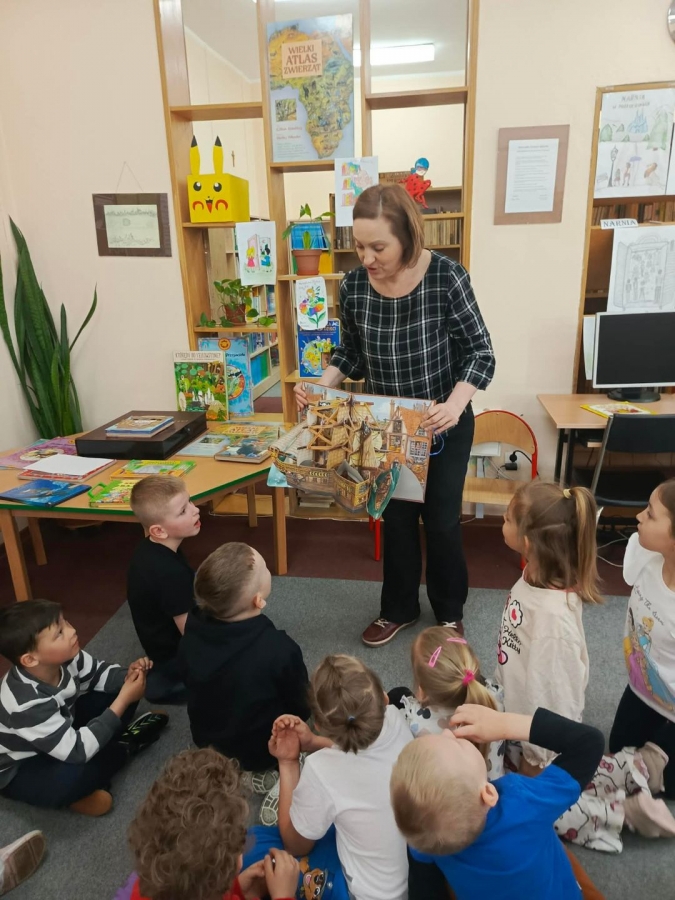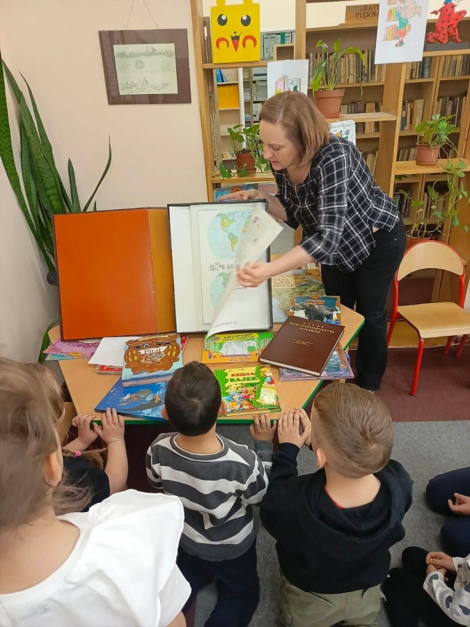 Dzieci zostały bardzo serdecznie i ciepło przyjęte przez Panie bibliotekarki, które z ogromnym zaangażowaniem wprowadziły małych gości w magiczny świat książek. Przedszkolaki miały możliwość zapoznania się z księgozbiorem, wysłuchały ciekawych opowieści oraz dowiedziały się, jak należy dbać o książki i korzystać z biblioteki.