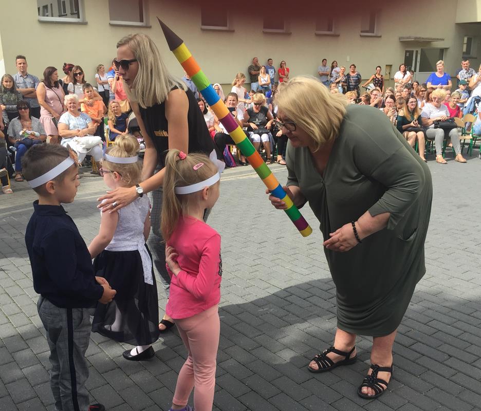 W drugiej części swoją niezapomnianą chwilę miały dzieci nowoprzyjęte, które po odczytaniu uroczystego aktu ślubowania przez panią Danutę Siluk zostały przyjęte w poczet przedszkolaków. Pasowania dokonał pan dyrektor Karol Kołyszko, pani wicedyrektor Danuta Siluk, wicedyrektor Zofia Myszka, wicedyrektor Ewa Sawicka. Na dobry początek, żeby osłodzić naszym milusińskim pobyt w przedszkolu, każda z grup otrzymała słodki upominek oraz dyplom z pasowania.