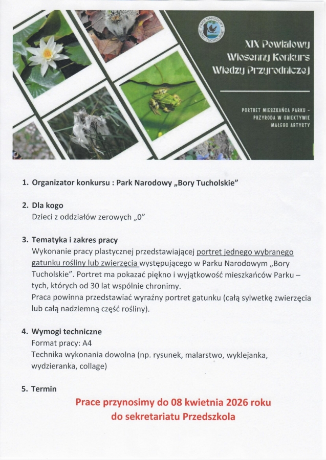 | 5 | X Ogólnopolski Konkurs Artystyczny pod hasłem: Po raz dziesiąty konkurs nasz baśniowy, na kadr z Rodziną otwórzmy swe głowy" | wrzesień/październik 2025 |
