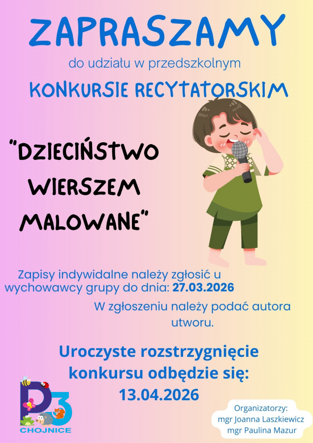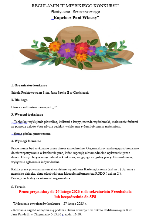 Harmonogram konkursów w Przedszkolu nr 3 w Chojnicach w roku szkolnym 2025/2026